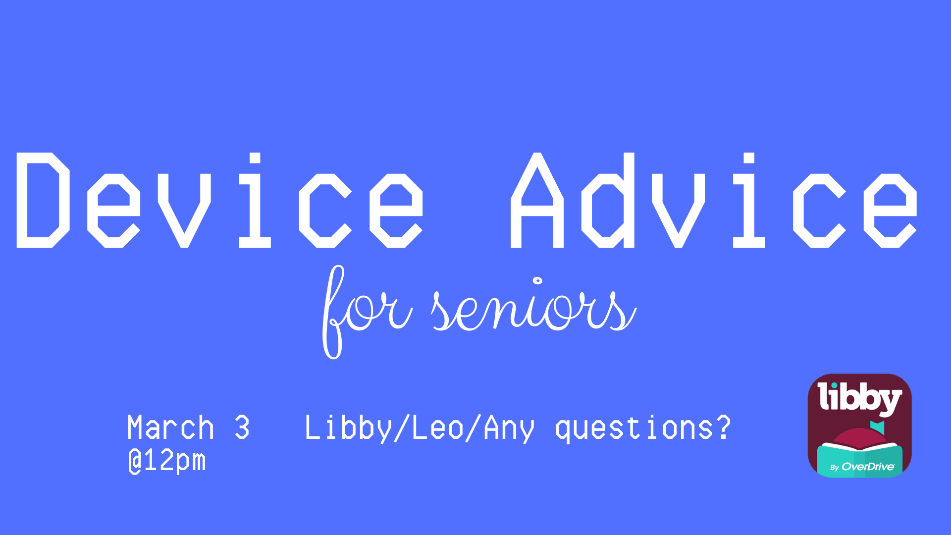 Bring your smartphone/laptop and your questions for some hands-on technology instruction.
